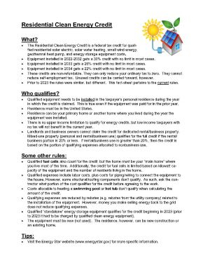 Residential Energy Tax Credits: Overview and Analysis Congressional Research Service 3 Current Law For the 2017 tax year, taxpayers are eligible to claim tax credits for expenditures related to residential energy-efficiency and residential renewable-energy generation technologies. The first ... Read Here